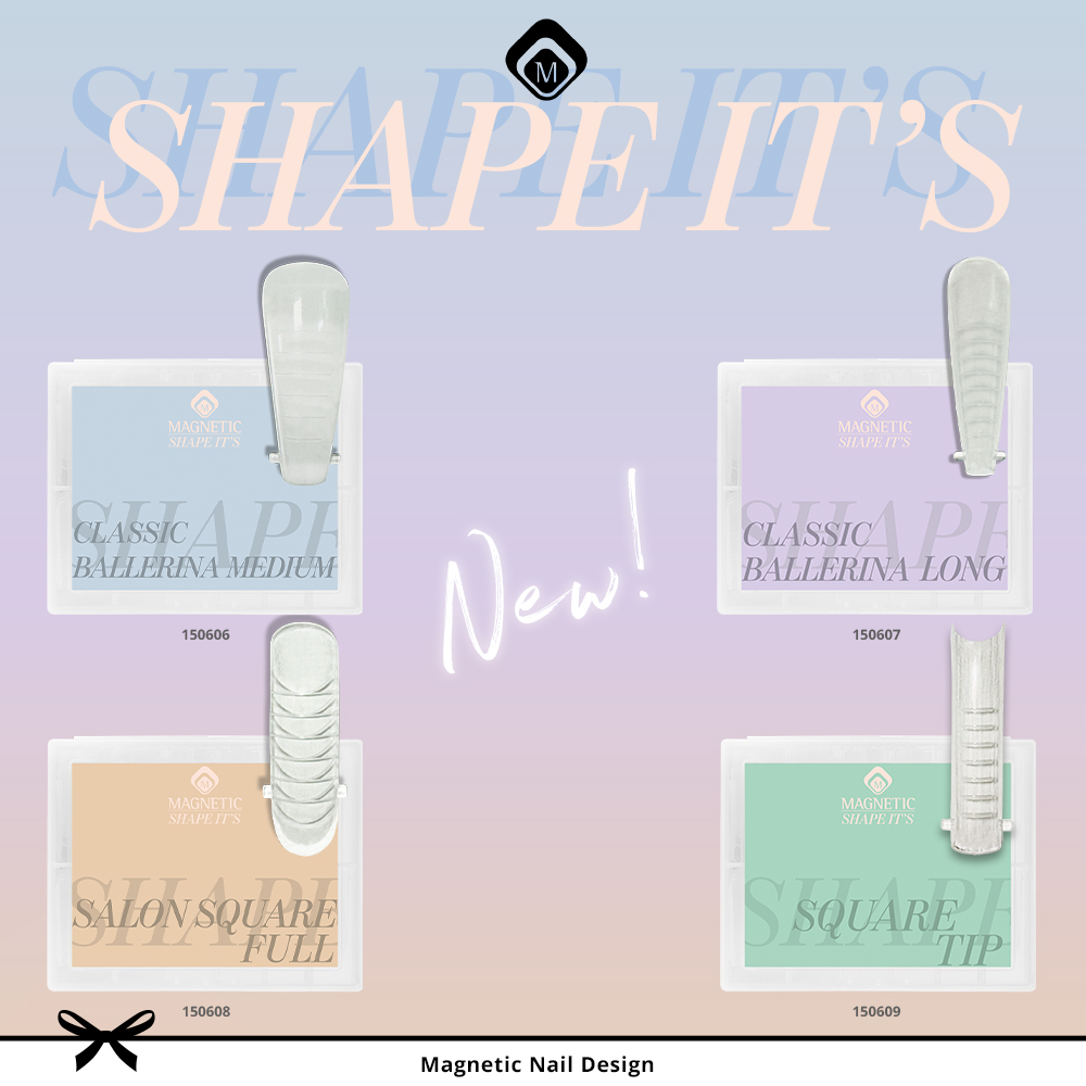 De Magnetic Shape It’s – Dual Forms zijn een technisch hulpmiddel om in 1 keer de optimale structuur en vorm van de nagel te maken. De Shape It’s zijn met ieder product te gebruiken; PowerGel, FiberGel, Acryl en ook Builders in a Bottle zoals Blush, RubberBase en FiberCoat. De Shape Its zijn in verschillende vormen verkrijgbaar, zo is er voor elke klant een passende vorm. In het doosje zitten 120 stuks met verschillende maten.